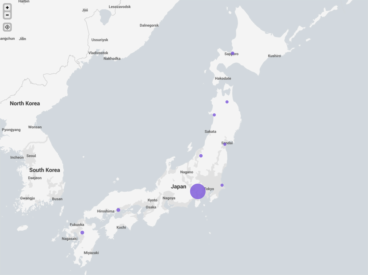 index=myservice_access_logs | top limit=100 ip | docodoco ipfield=ip | geostats latfield=CityLatitude longfield=CityLongitude count