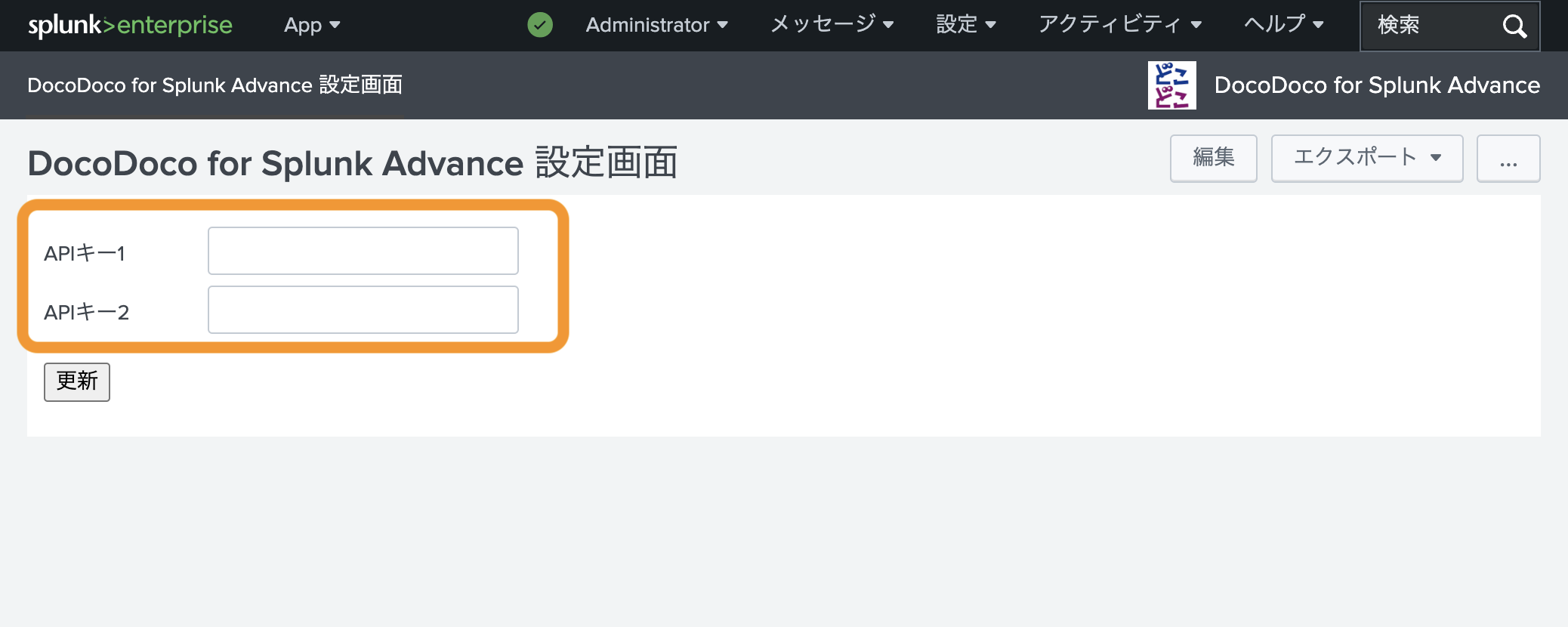 DocoDoco for Splunk Advance を利用する際に必要などこどこJP APIキーの設定を実施します。