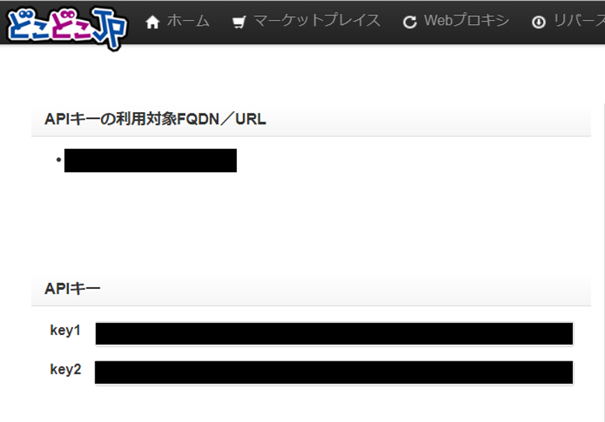 key1 (APIキー1), key2 (APIキー2) を「3. APIキーを設定」の手順で使用しますので、手元に控えてください。